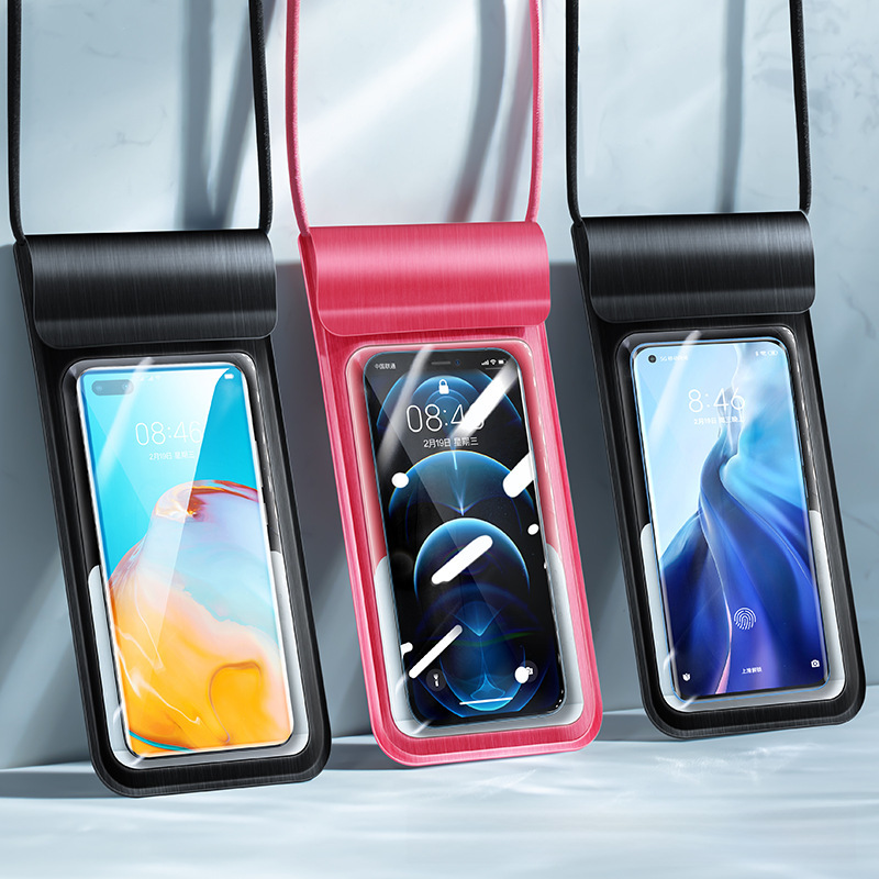 tpu transparent touch screen mobile phone case outdoor hot spring swimming diving luminous waterproof case storage mobile phone waterproof bag